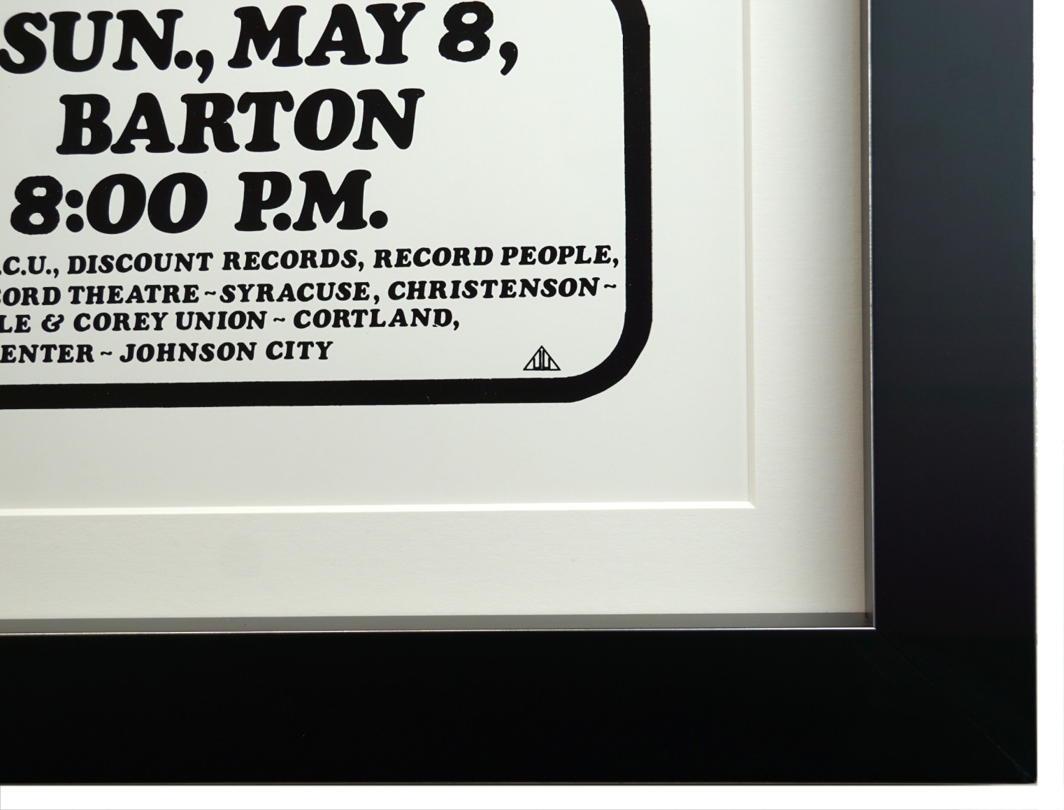 Few posters were produced for the show—reportedly 500 or less—and they were mainly distributed to Cornell Concert Commission members and students, with a small number of posters going to ticket outlets. Little advertising was done or needed for that matter; the show sold out in two days. The poster was designed by Cornell senior engineering student Jay Maybrey, now an orthopedic surgeon practicing in Texas.