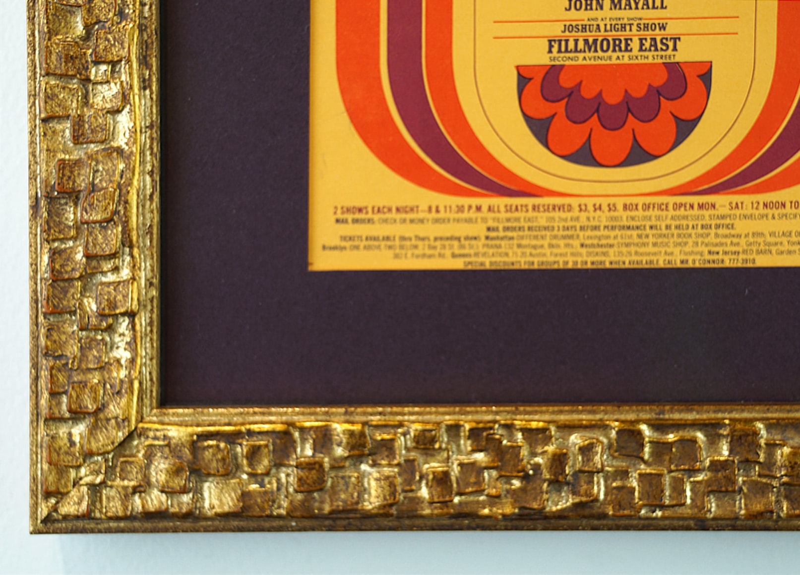 Unlike how he promoted concerts in San Francisco, Bill Graham funded only a handful of full-sized posters for shows at the Fillmore East. Instead, he had smaller and more economical postcards printed and often those listed a 4-6 weeks of upcoming shows. The Fillmore East had become such a center for teenagers and hippies to hang out that he barely needed to advertise to fill the house. As one visitor to the Bahr Gallery remembered, “we rarely knew who was playing – we just knew if it were the Fillmore East, it would be good.”