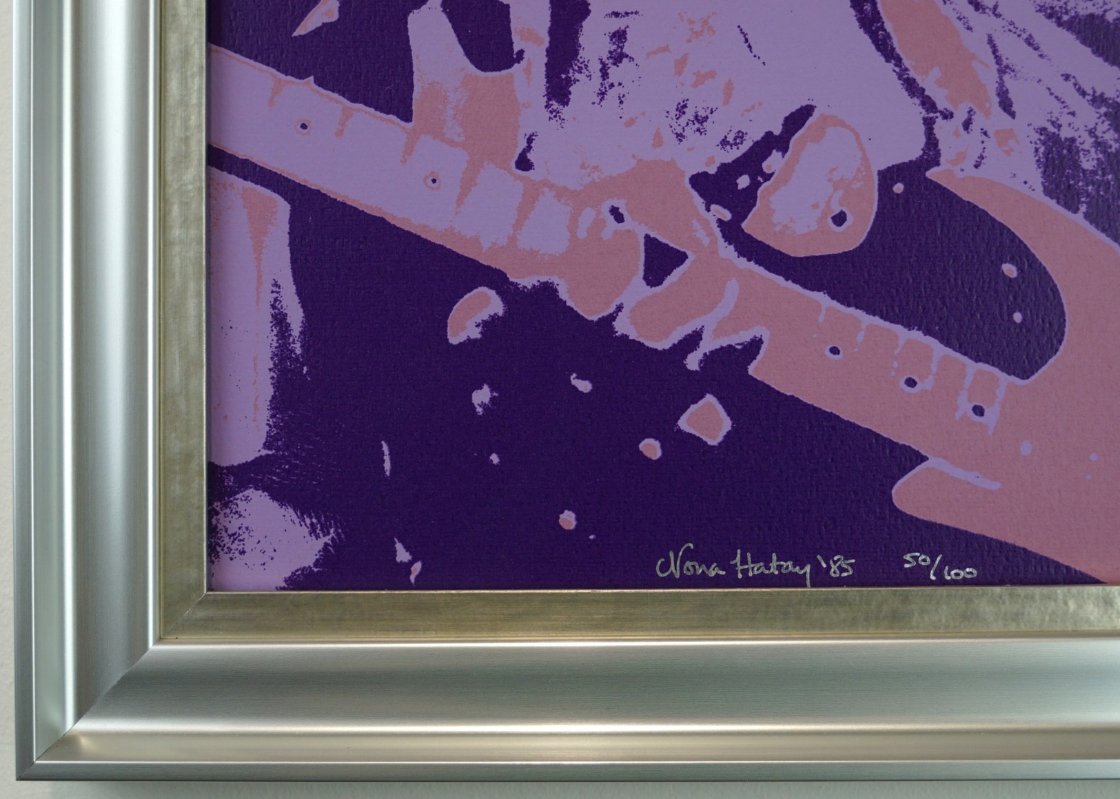 This nice Hendrix poster features a photograph by Nona Hatay which was published as this numbered series of posters in 1985. Not much is known about the origin of this piece except that Hatay took the photograph at the May 18, 1969 concert at Madison Square Garden while on assignment as a newspaper photographer. Hatay went on to write a book entitled Jimi Hendrix: Reflections and Visions, which features Hatay’s photography and Hendrix’s lyrics. This poster was printed in a limited edition of 100 pieces; this is number 50.