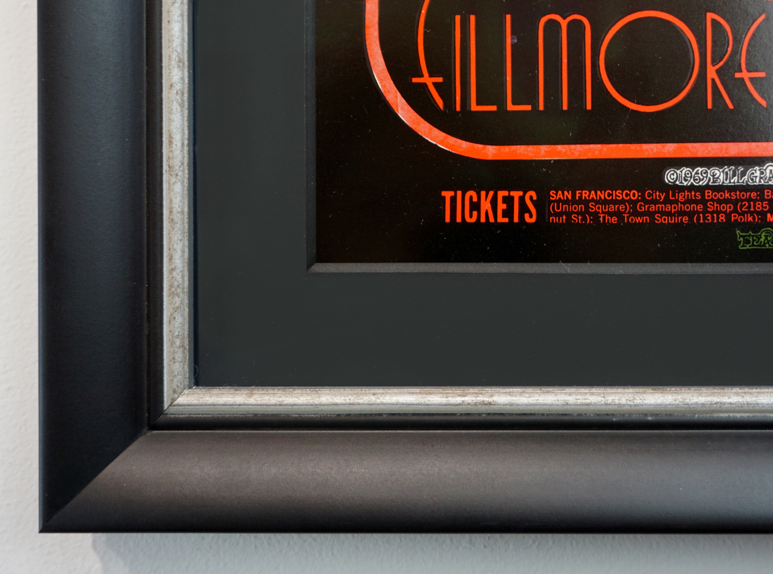 Randy Tuten designed this poster for the Fillmore West which marked the first American Tour for Led Zeppelin and their first show in San Francisco. Tuten writes, “This was the first show for Led Zeppelin in SF Bay Area. I used a classic car just for the fun of it, but also because Led Zeppelin was kind of the new Cadillac of rock & roll, to use a metaphor.” Maybe so, but they were still opening for Country Joe and the Fish. Last time that happened though!