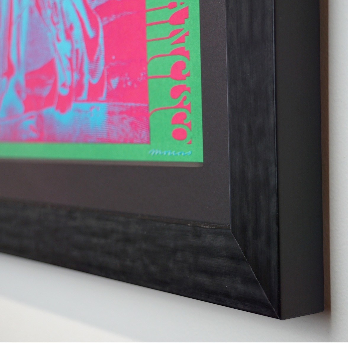 Only first original pre-concert printings of this issue were produced, no second printings exist, and it was the 8th produced by artist Victor Moscoso in his retinal-burning Neon Rose series. It was printed in 1967 for a run of shows at the Matrix in San Francisco. By the end of 1966, Moscoso realized that the posters he and others were creating to advertise the dance concerts proliferating in San Francisco were admired – and sellable – works of art and thus could not only advertise the concert but also be sold later to adorn hippie walls. So Moscoso went to the management of The Matrix and offered to create and print their posters for free, as long as he could print extras and sell them.