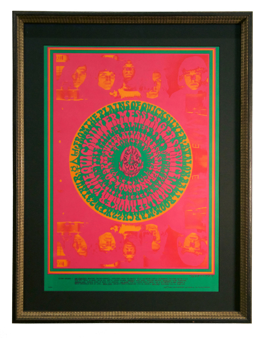 Wes Wilson, considered the father of the psychedelic poster, got things started and you will see his style develop in early 1966 and mature into beautifully composed pieces surrounded by his trademark psychedelic lettering style.