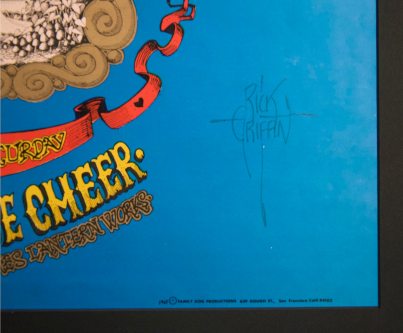 This was the first of the Family Dog shows in Denver, an experiment that would only last four months. The "Dog" pulled out all of the stops for this first pair of shows, as Janis Joplin and Big Brother were the headliners, and Rick Griffin provided the artwork. This odd-sized poster whose horizontal treatment reveals very detailed pen & ink drawing of both commercial advertising icons of the time and inside references to other posters and characters of The Scene. The title says, “Everybody is Good at Heart.”