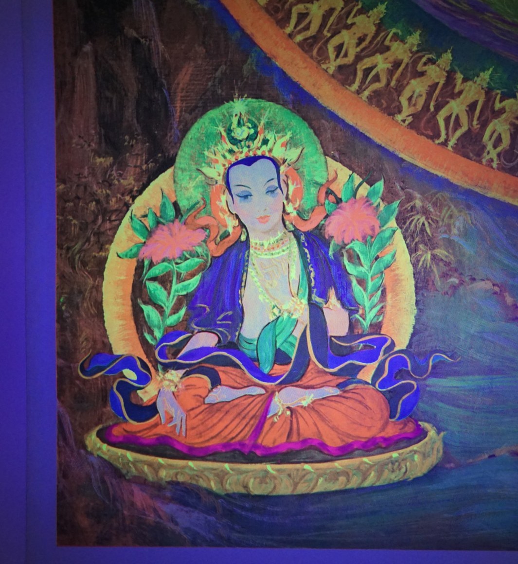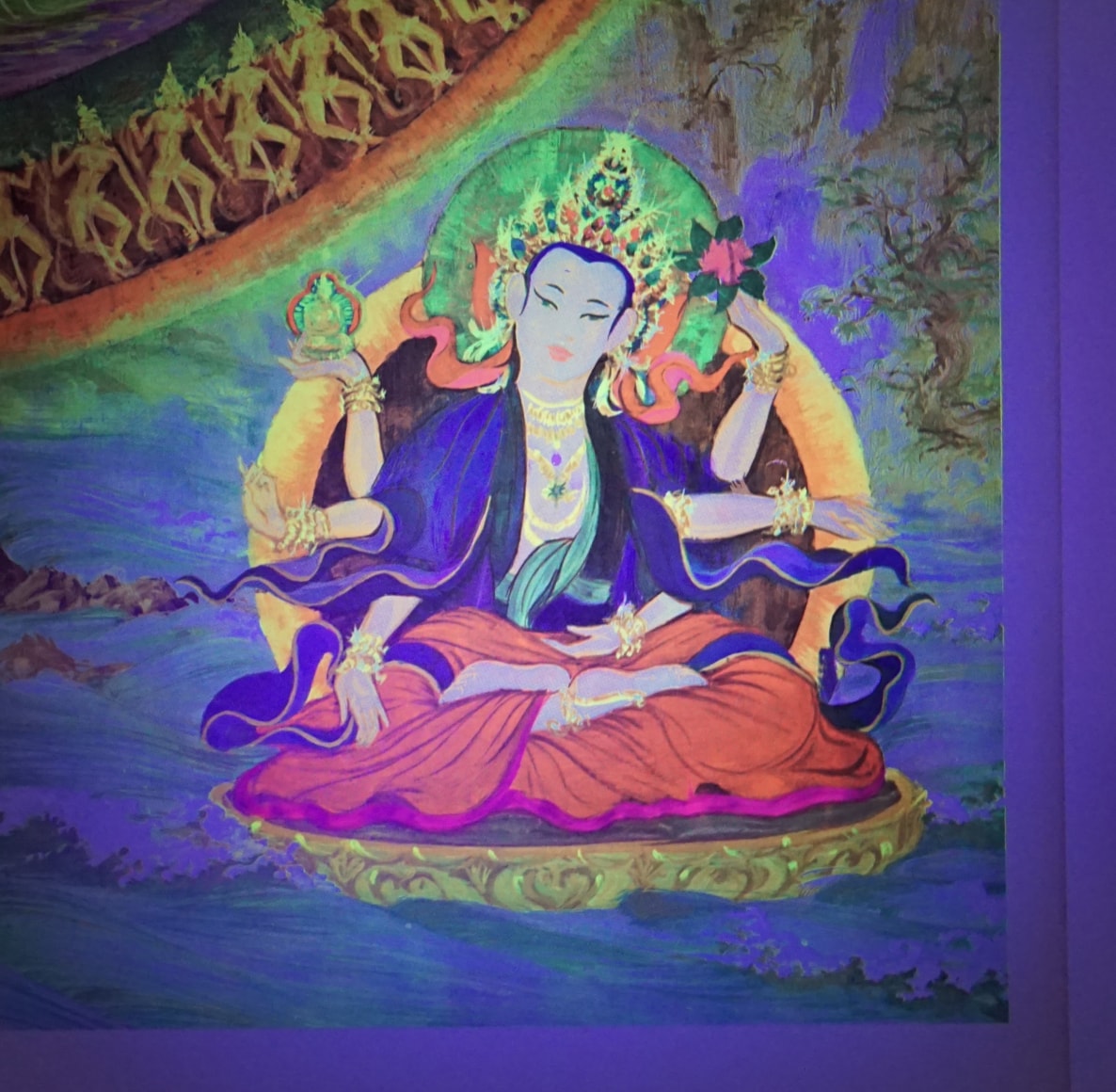 In the Hindu universe there are five cosmic elements, Akasha, Air, Fire, Water, and Earth. Akasha connotes creative energy and the other four elements represent creation proper. Since we have the four elements surrounding Mr. Dylan, perhaps it is he who represents the “creative force.” Astrology and Eastern religions were very much studied and on the minds of the hippie generation and it’s very likely that the various goddesses depicted here were deliberately selected.