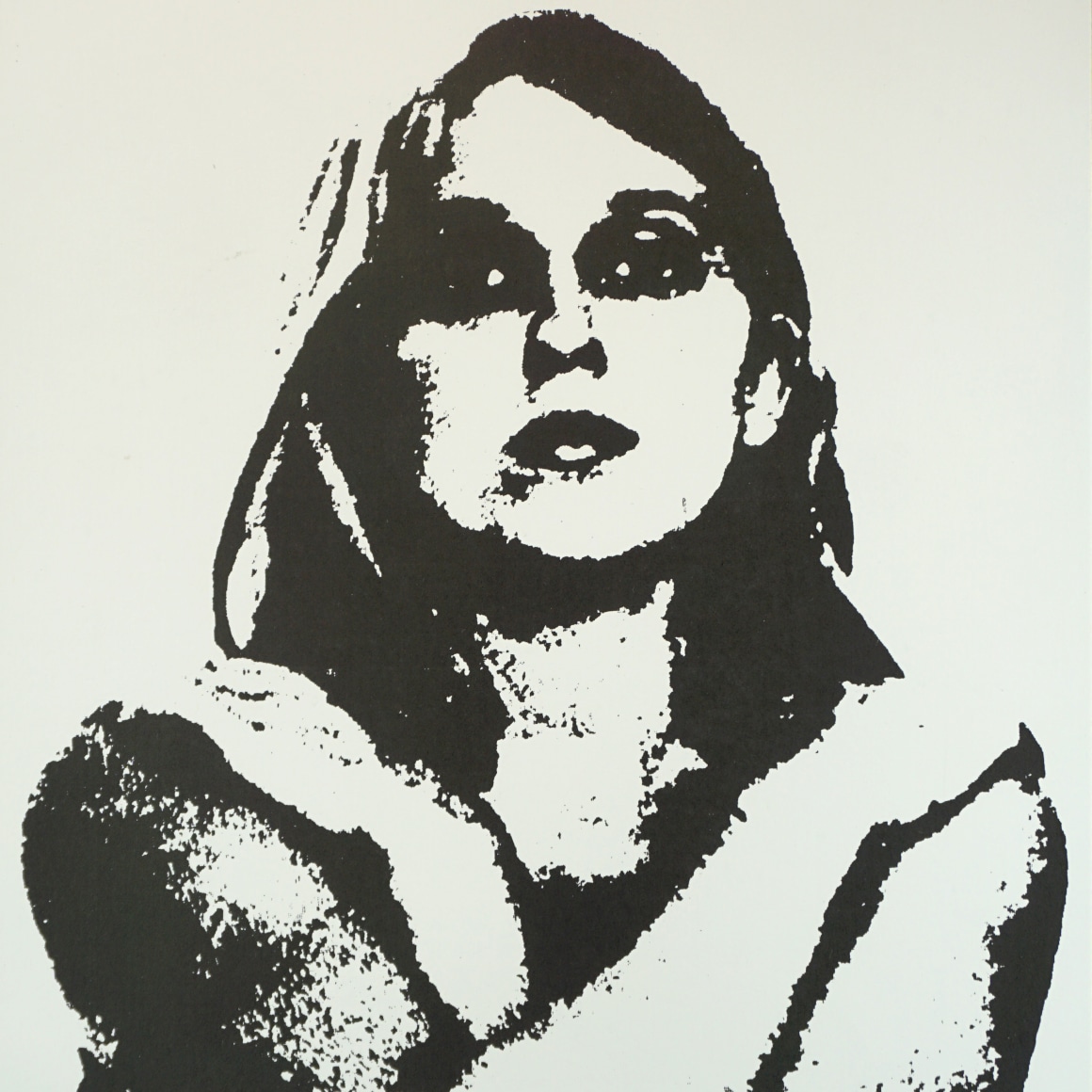 The haunting image of the beautiful woman looking out at you is one Kathy Spencer, who was a student at the Museum School (at the Museum of Fine Arts in Boston). The image was created by a classmate of hers (unknown) and Kathy gave it to Bob Driscoll, who incorporated it in the poster. She was also the model for an earlier Boston Tea Party poster for the Yardbirds, in 1968.  You can see that poster and a younger Kathy Spencer HERE