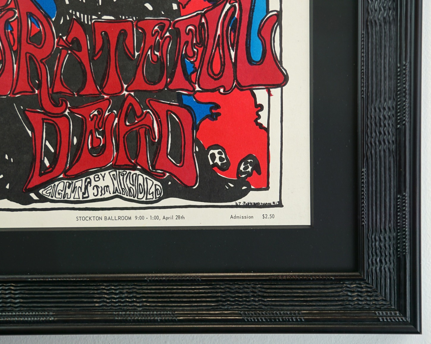 Extremely rare primitive but brilliant silkscreen done for a small show in Stockton California. This poster is as near to “one-of-a-kind” as any.