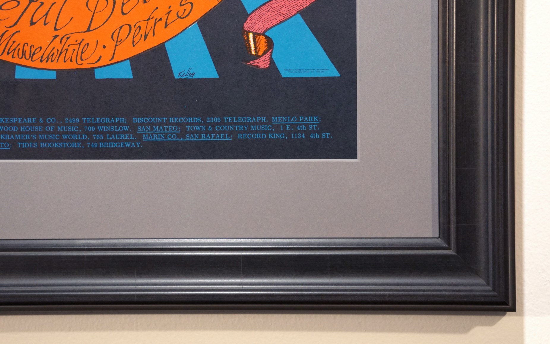 This is one of the classic Grateful Dead images of the psychedelic era. These posters promoted the 1968 Memorial Day shows at The Carousel Ballroom. The days associated with this concert did not match the dates and many of these posters have the days at the top blacked out with a sharpie. The type without the blacked-out dates is far scarcer and commands a premium and this is that rarer piece.