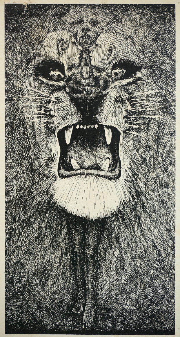 Note that Conklin did not create the poster itself - just all of the graphic elements - and this is why he signed below the lion. Interestingly, the first use of this image was in a 1968 poster Conklin did for the Grateful Dead, with Santana billed thrid - they had yet to put out an album. Santane loved the image of the Lion so much they asked Cnklin if he could adspt it for their first album cover - and that is where the image is generally known from