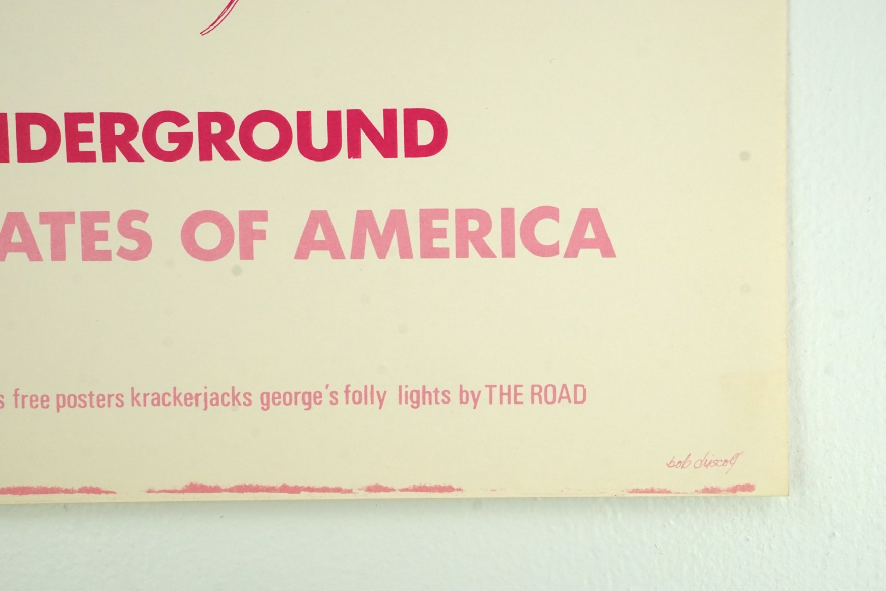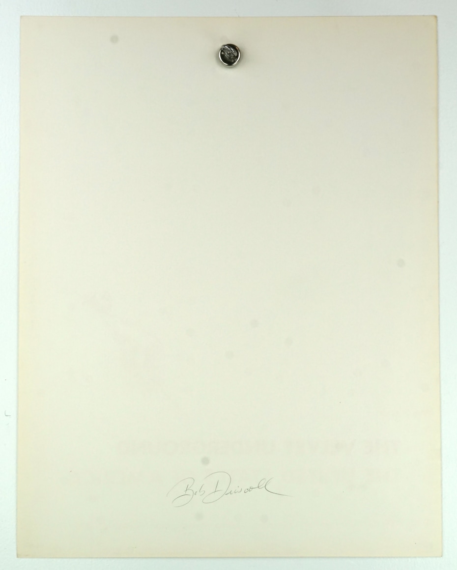 Super-rare original concert poster, printed before the shows to sell tickets, for the Velvet Underground and the United States of America appearing at the Boston Tea Party in Boston, Massachusetts on Friday and Saturday nights, March 22 & 23, 1968. Features very sparse artwork all in pink, including a drawing of a very stylized psychedelic woman. It was done by Bob Driscoll, whose name appears in the lower right corner and who has also signed this poster on the verso.