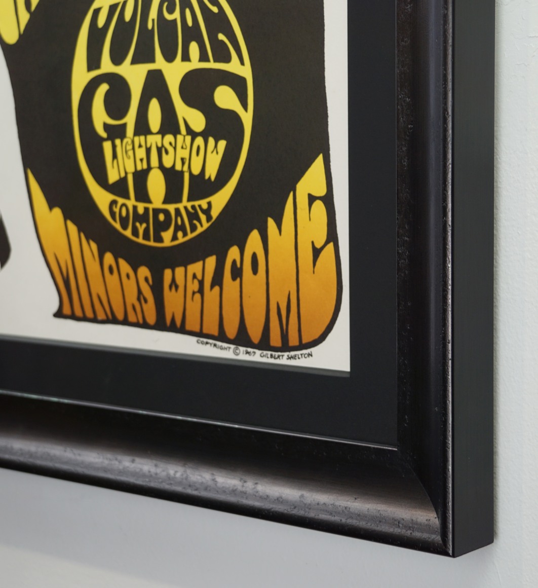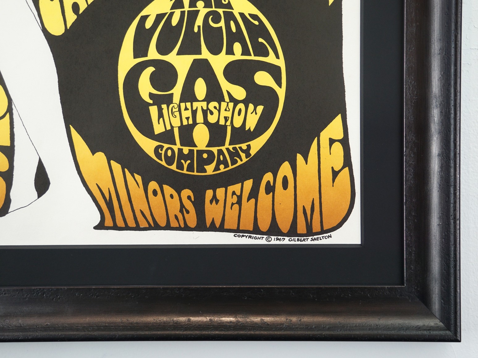 Known as VG-4, this poster was designed by Gilbert Shelton and is commonly called "White Girl." Shelton is best known for his underground comic, The Furry Freak Brothers. Shelton was the art director for the Vulcan Gas along with Jim Franklin of Armadillo World Headquarters fame. Shelton went on to become one of most well-known underground Comix artists